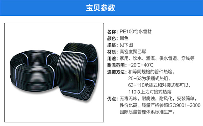 金牛PE水管管材 PE盤管PE自來水管 PE給水管配件管件