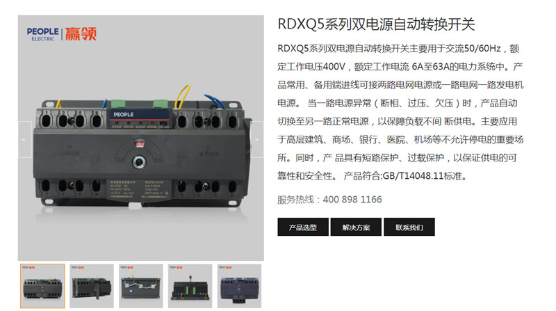 RDXQ5系列雙電源自動轉換開關主要用于交流50/60Hz,額定工作電壓400V,額定工作電流6A至63A的電力系統中。