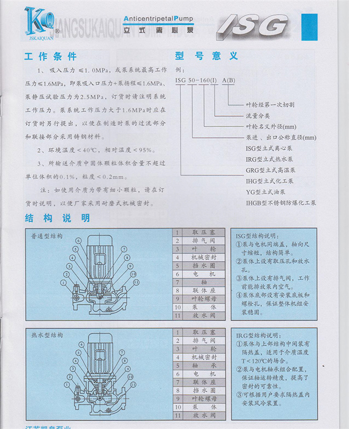 KQLISG/IRG單級(jí)立式離心泵泵業(yè)上海凱泉管道泵