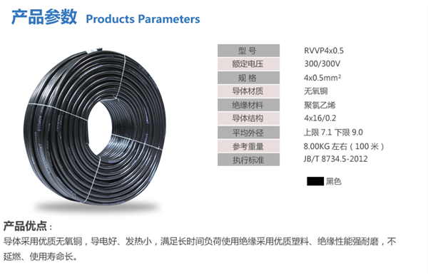 導體采用優質無氧銅,導電好、發熱小、滿足長時間負荷使用絕緣采用優質塑料、絕緣性能強耐磨、不延燃,使用壽命長