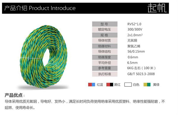 起帆電線 聚氯乙烯絕緣電線 聚氯乙烯絕緣軟線 聚氯乙烯絕緣屏蔽電線 RVS雙絞線