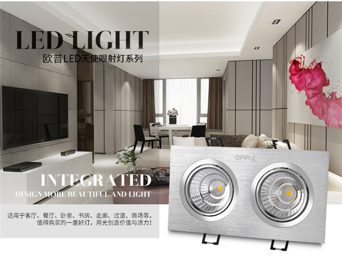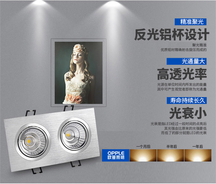 歐普led射燈雙頭cob格柵斗膽燈嵌入服裝店背景墻客廳走廊過道燈