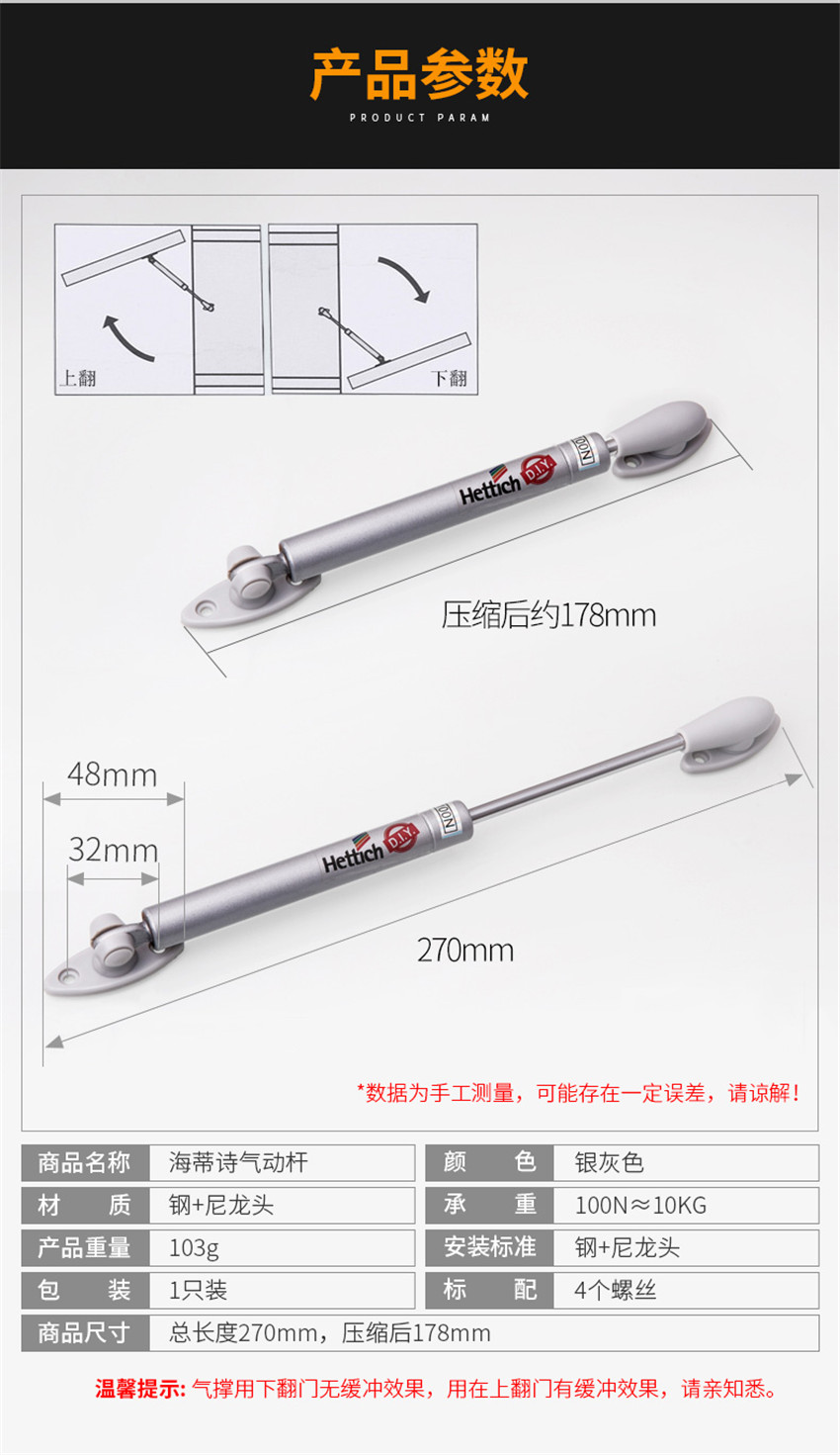 液壓桿支撐桿氣撐榻榻米櫥柜上翻門氣動氣彈簧伸縮桿 一只裝