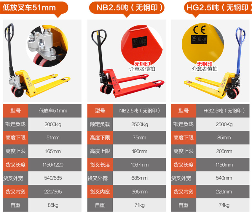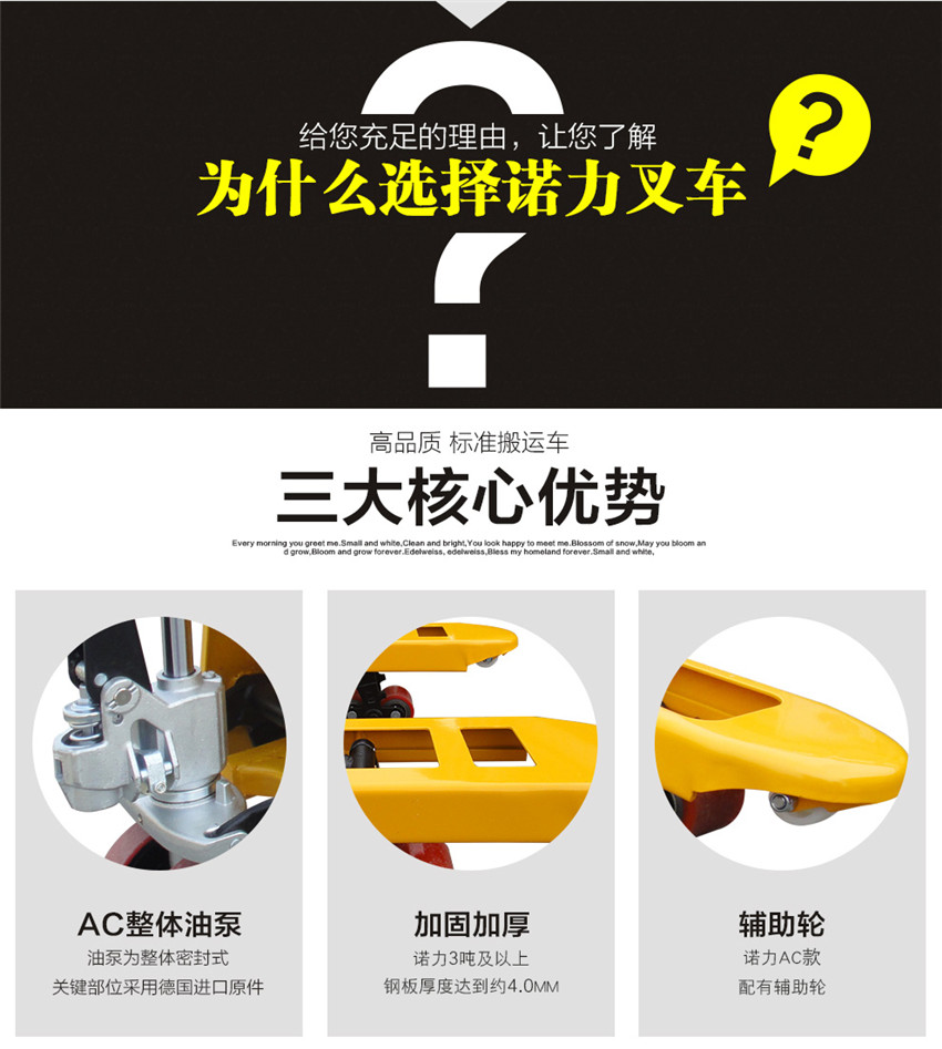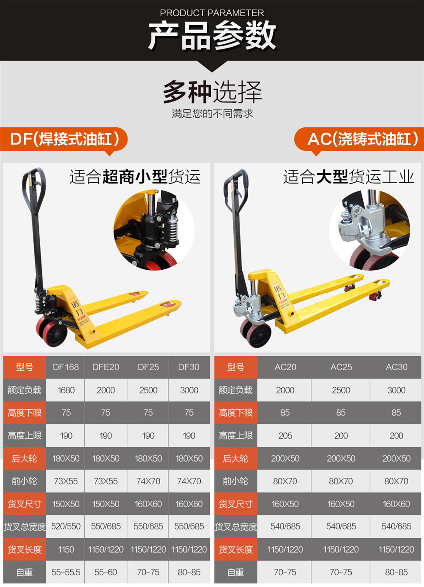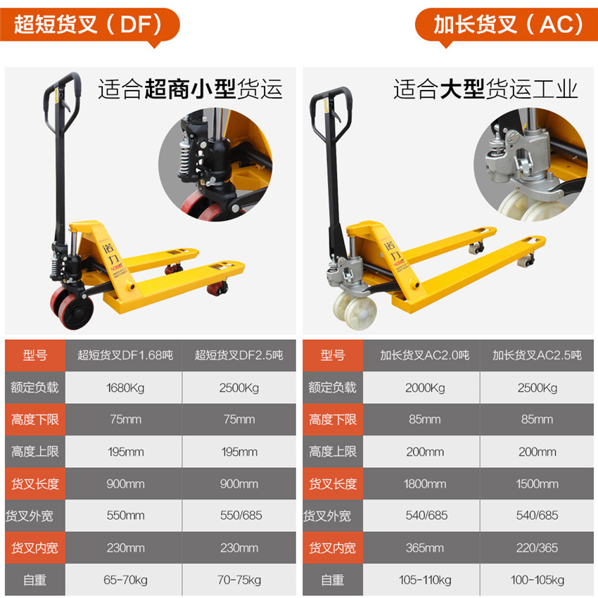 諾力叉車 DF1.68/2.5噸3T手動液壓托盤搬運叉車