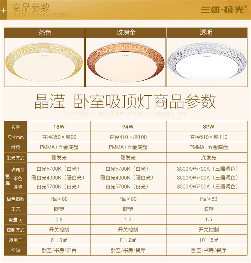 三雄極光 led吸頂燈圓形客廳燈臥室燈